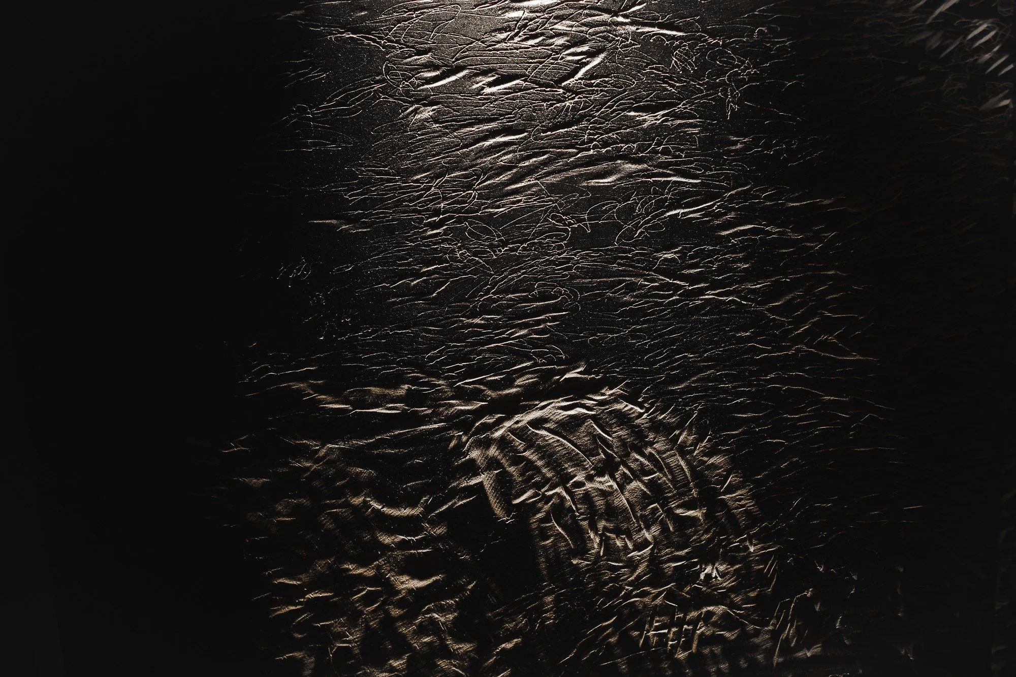 On their reverse, the plates show a 9-meter landscape that I've been revisiting for a long time, a place I used to visit with my family, with my mom, Mariana Schapiro, who was also a sculptor. She did a series of works related to this place in southern Chile. Twenty years later, I'm revisiting this landscape, making my own version. It's an image worked with power tools, a relief that can be printed but also functions as an installation, as a graphic object.